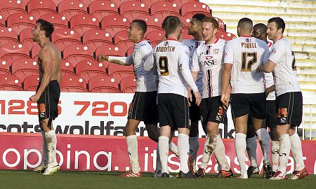 Fellow promotion chasers MK Dons snatched victory with almost the last kick of the game after Smith gave Town the lead before half-time (pic. below).