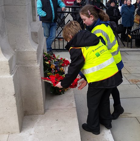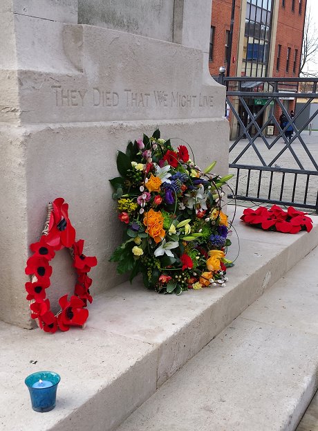 Wreath were then laid ceremony at the Cenotaph in Regents Circus in Swindon at 12 noon, before a time of more reflection was spent at The Friends Meeting House on Eastcott Hill with readings and presentations by members of many of Swindon’s faith groups and community groups, as well as contributions from individuals.